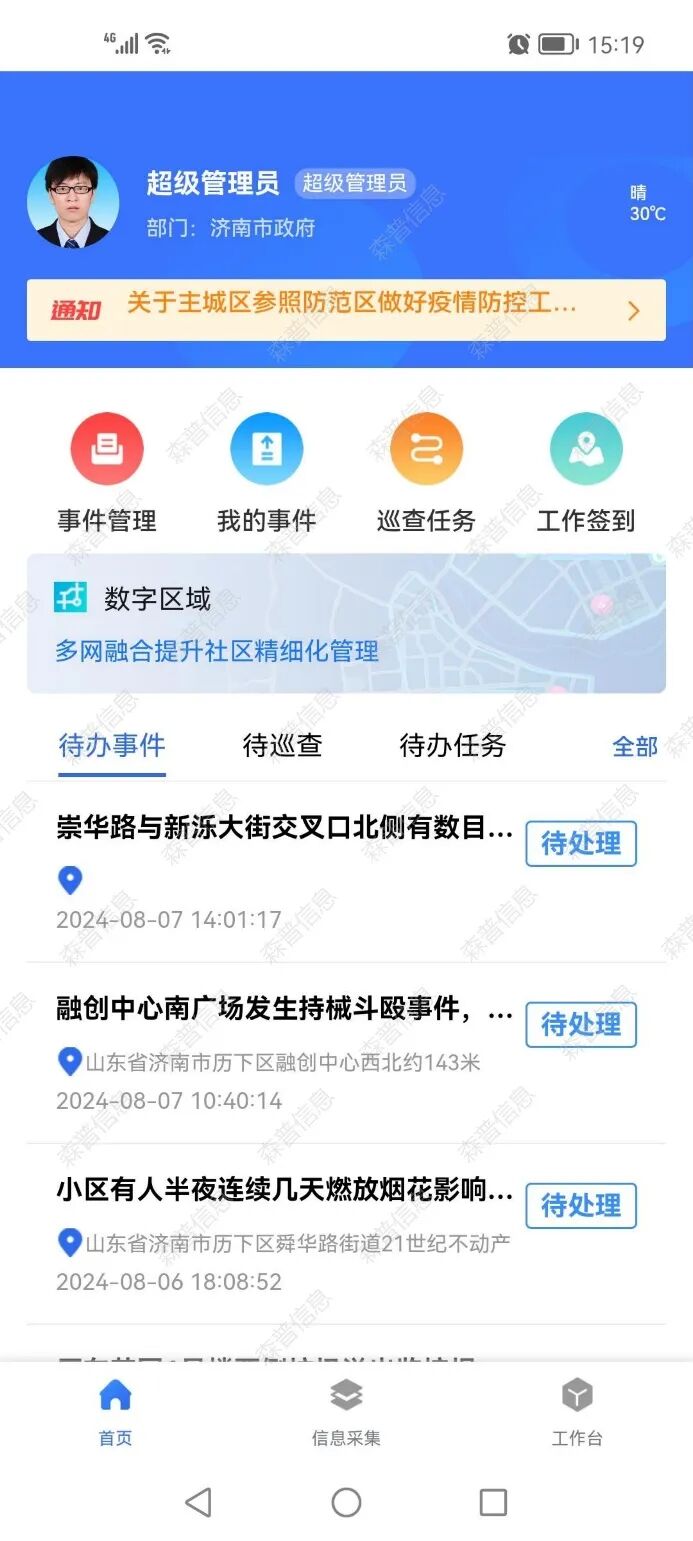 APP整合四大核心办公功能,构建"一站式"治理平台: